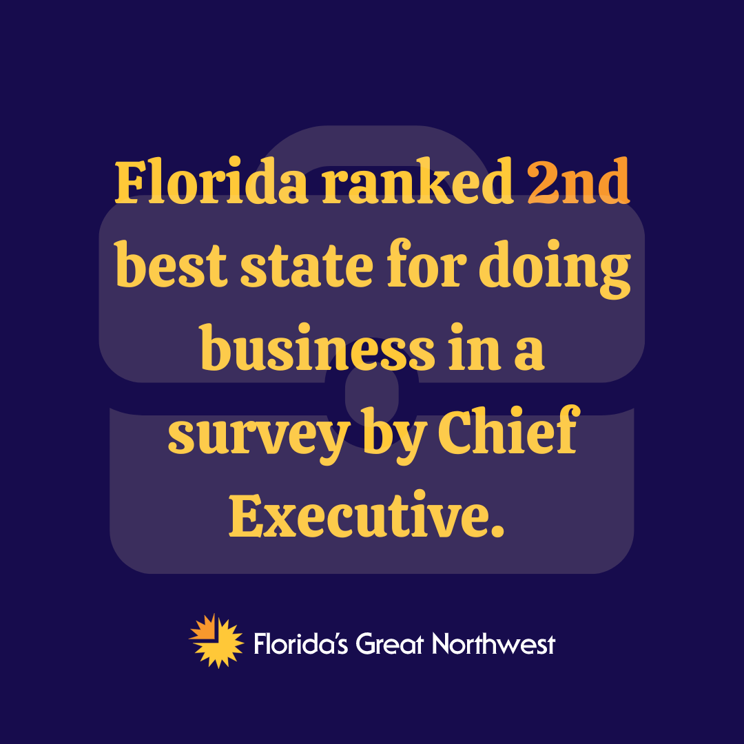 Florida was ranked #2 in a survey by Chief Executive to discover what states are the best for doing business.