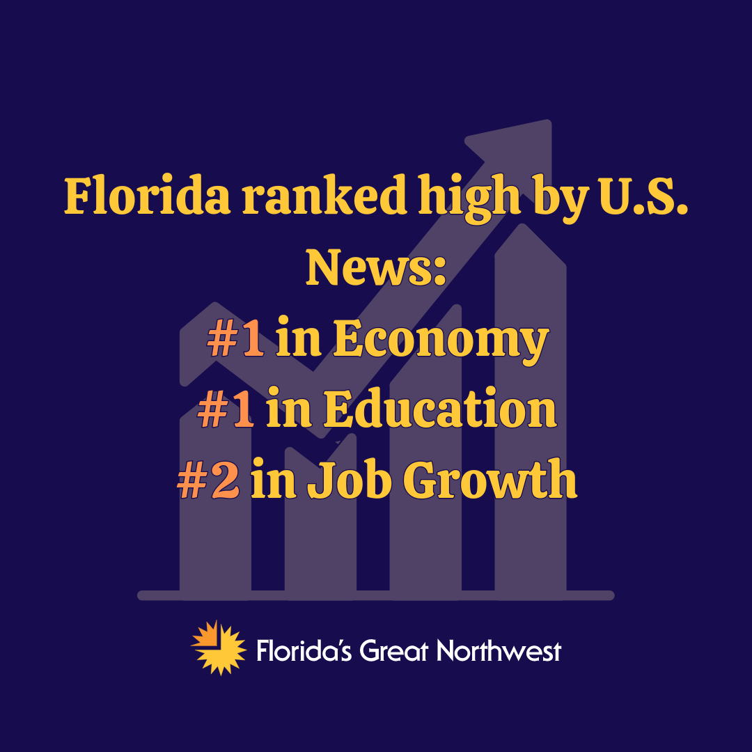 In recent months, U.S. News has recognized Florida as a top-ranking state in economy, education, and job growth. These achievements represent the growth and continued development occurring within the Sunshine State.